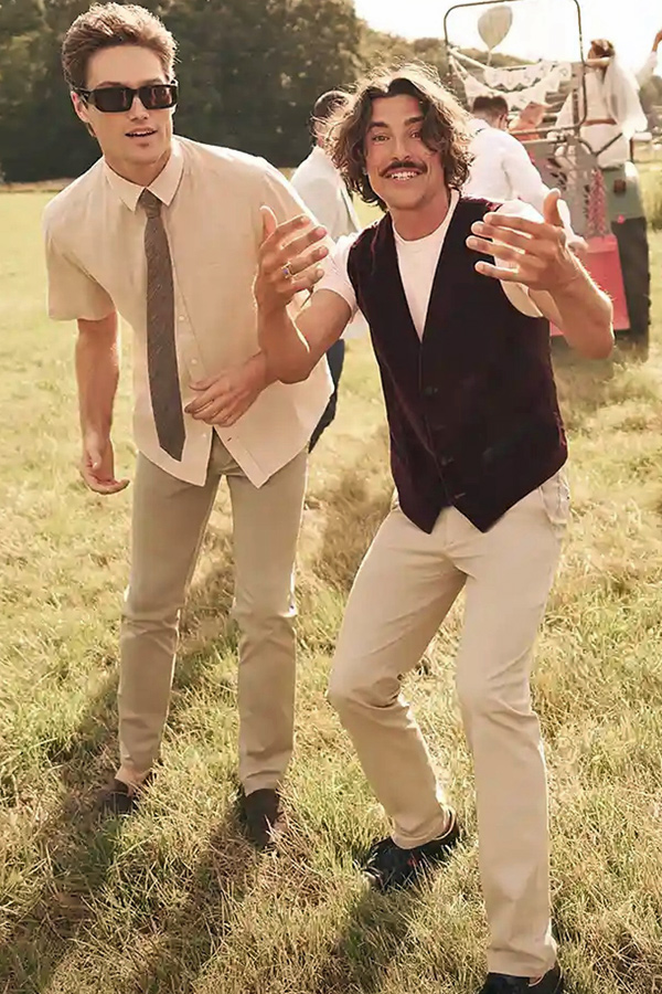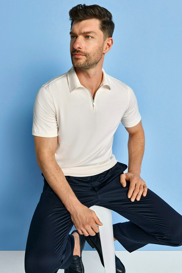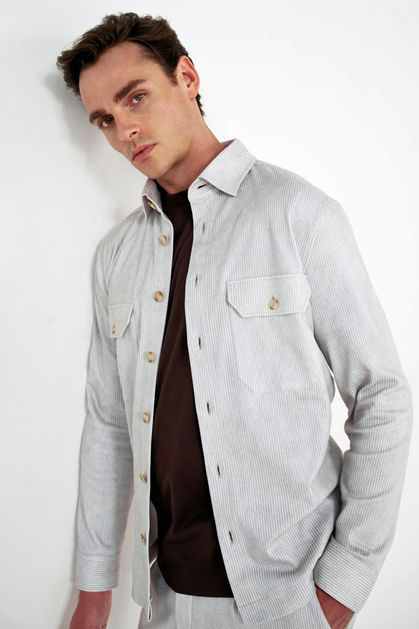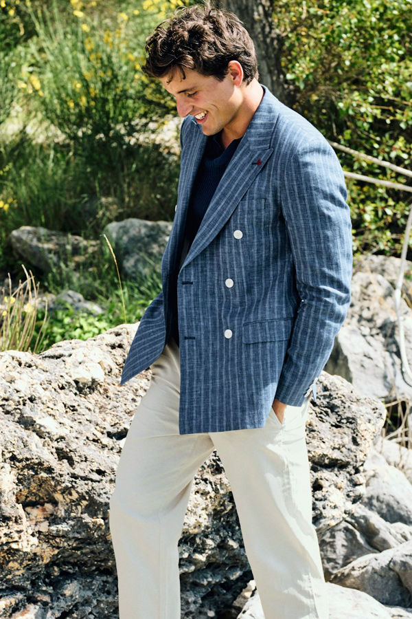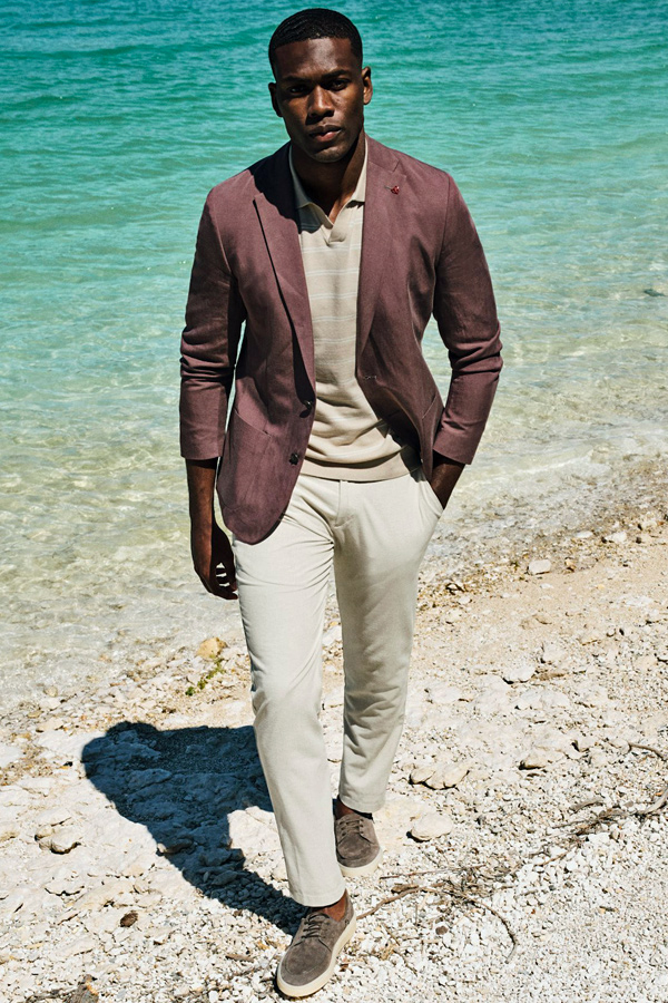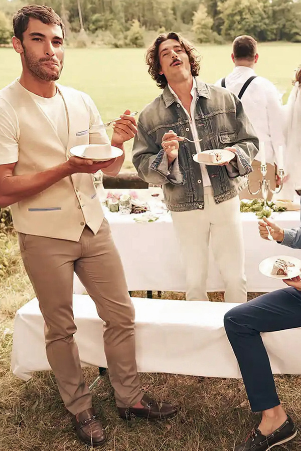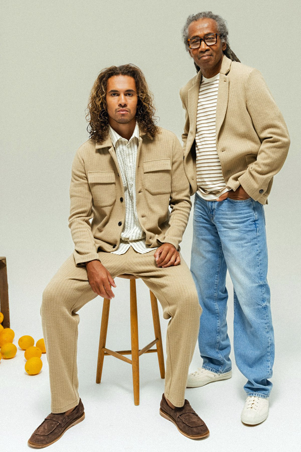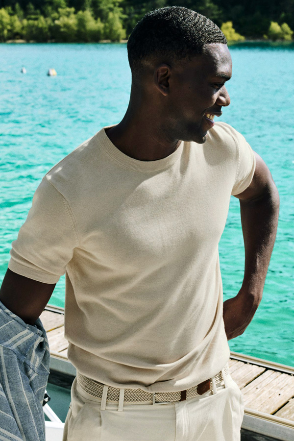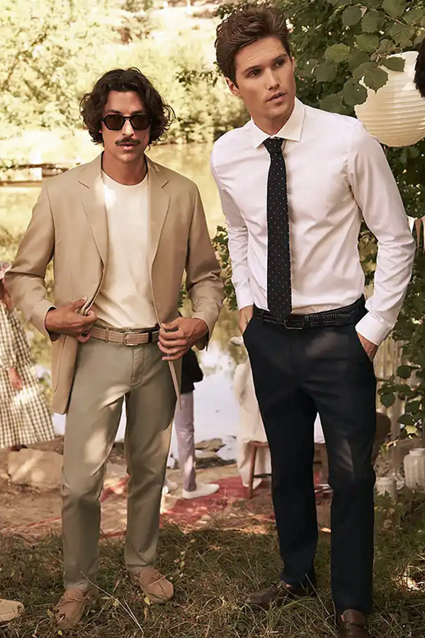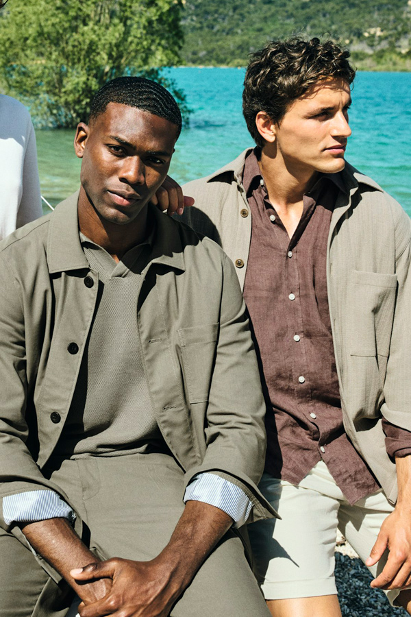 Les coupes sont nettes, les matières légères et agréables à porter. Vestes souples, costumes élégants, pantalons et chemises impeccables composent une silhouette maîtrisée, adaptée aussi bien au bureau qu’aux occasions plus habillées.