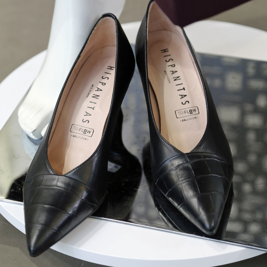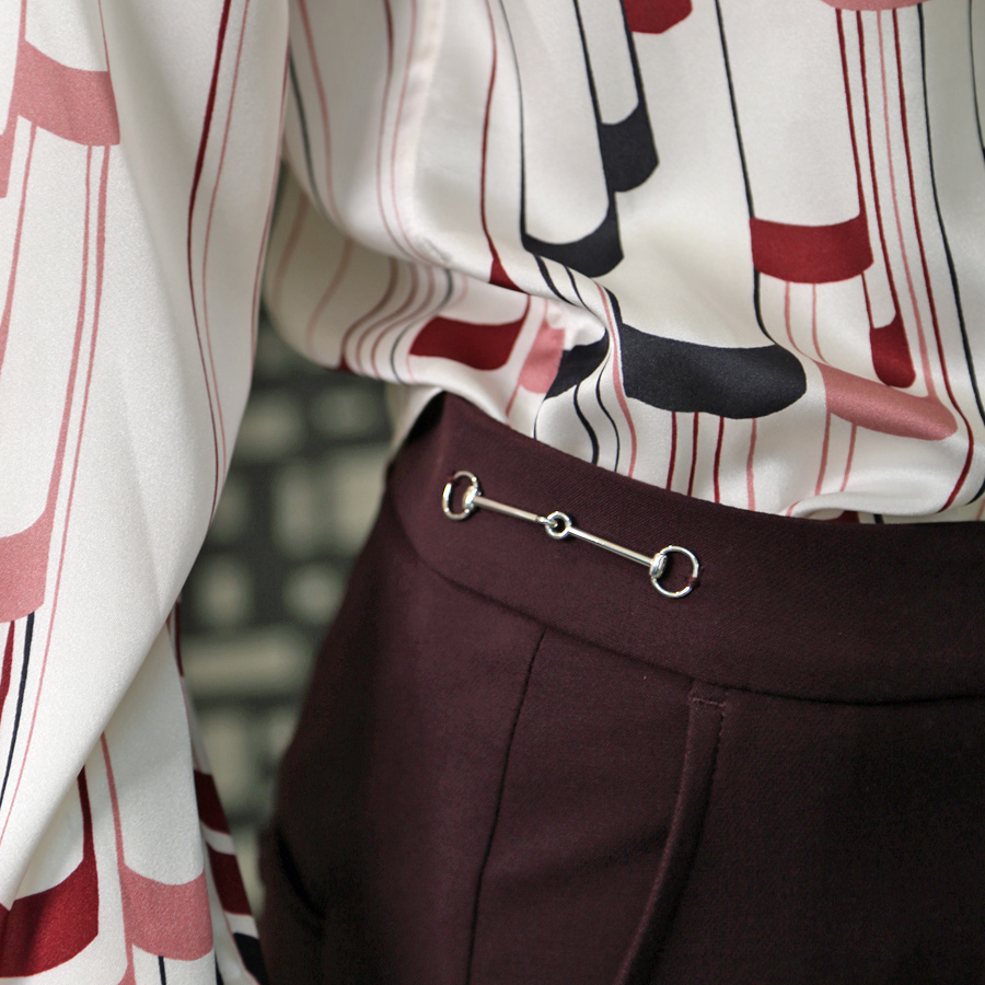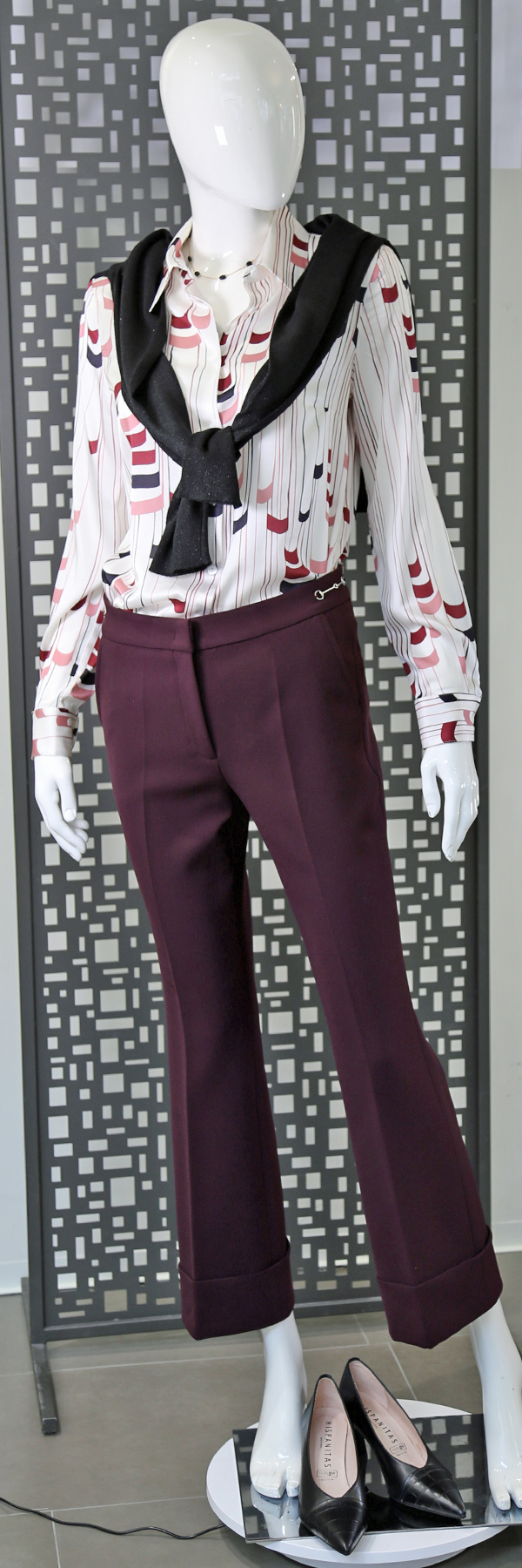 Blouse CamicettaSnob, pull Seventy, pantalon Cambio, escarpins Hispanitas.